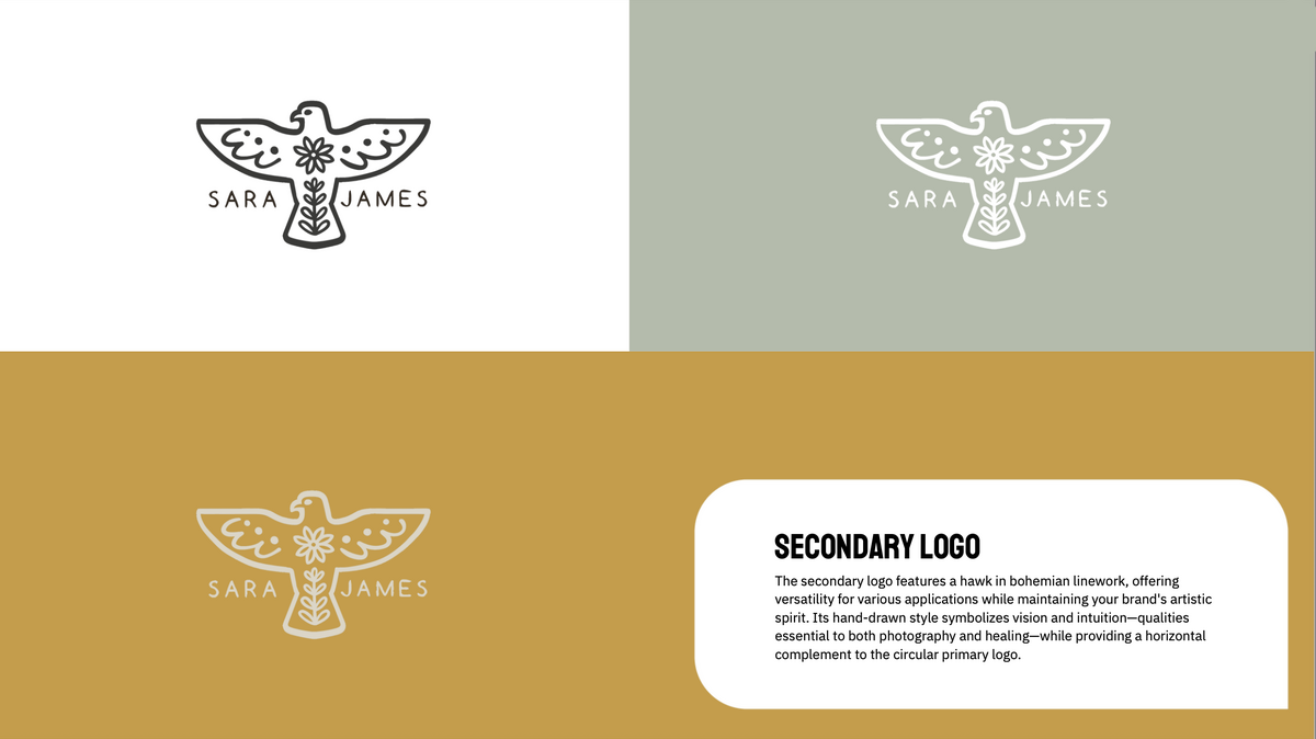 Sara James Photography needed a brand that echoed her warm, bohemian style, so the entire visual identity was built around that free-spirited, earthy energy. A custom logo suite, hand-drawn icons, and a grounded, natural color palette created the foundation. The website was designed to feel intimate and cinematic, mirroring the way Sara captures her clients - soft, honest, and artful. The final experience lets her work shine while giving her brand a distinct, memorable personality.
